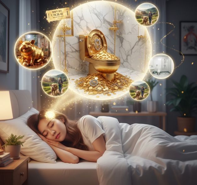 - 화장실에서 돼지를 보는 꿈 (최고의 재물운): 앞서 다룬 돼지 꿈과 연결됩니다. 화장실(재물 창고)에서 돼지(재물)를 보는 것은 횡재와 큰돈이 굴러들어 올 것을 암시하는 최고의 길몽입니다. 특히 사업가나 투자자에게 매우 좋은 징조입니다.