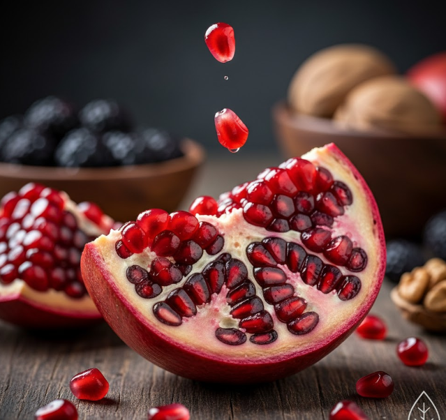 석류는 동서양을 막론하고 여성 건강의 상징으로 여겨져 왔습니다. 석류 씨앗에는 천연 에스트로겐과 성분이 매우 유사한 '엘라그산'과 안토시아닌이 가득합니다.