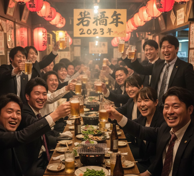 일본에서는 15세기 무렵부터 귀족이나 무사 계급들이 연말에 모여 "올해의 괴로운 일들을 술과 춤으로 잊어버리자"는 취지로 모임을 가졌습니다.