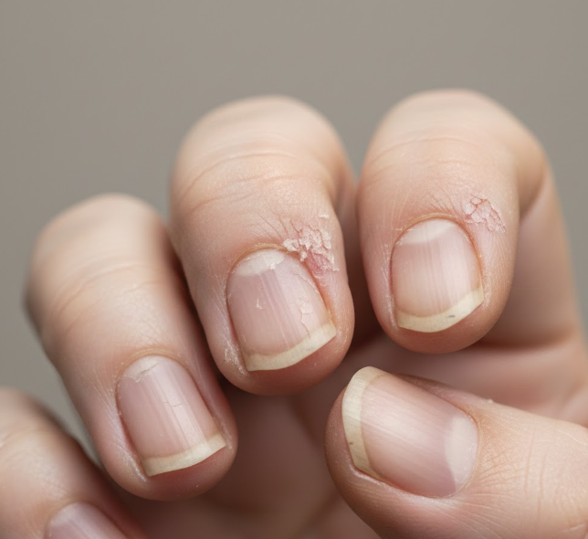 대처: 충분한 수분 섭취(하루 2L)와 핸드크림, 큐티클 오일 사용으로 보습합니다.