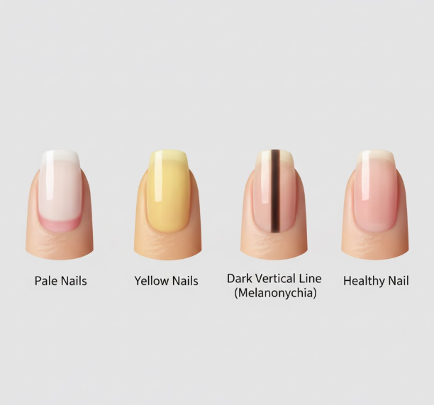하지만 검은색 세로줄이 갑자기 나타나거나, 통증·출혈이 동반되거나, 손톱이 심하게 변형되면 피부과 진료를 받아야 합니다. 갑상선 질환, 건선, 흑색종 같은 질병의 신호일 수 있기 때문입니다.