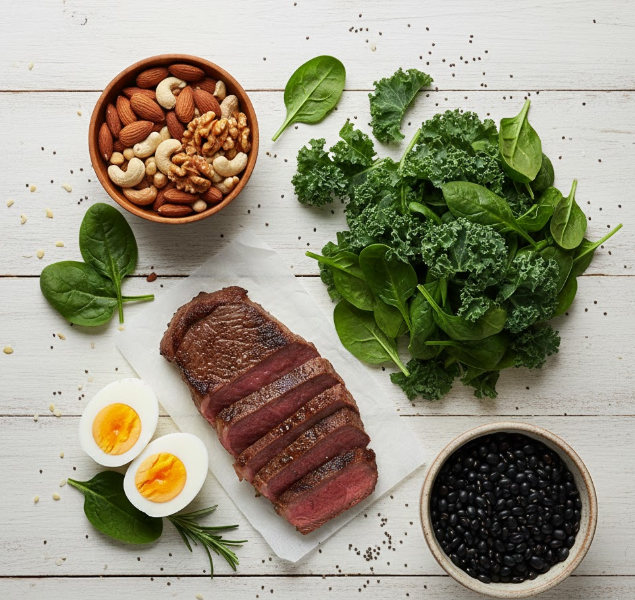 - 철분: 소고기, 시금치, 렌틸콩
