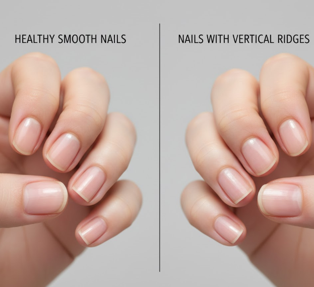 단백질 부족: 손톱은 케라틴 단백질로 이루어져 있어 단백질 섭취가 부족하면 손톱이 약해지고 세로줄이 생깁니다.