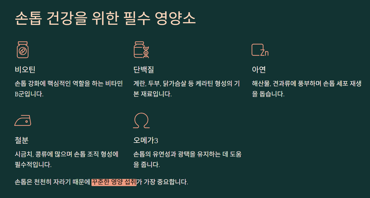 손톱은 천천히 자라기 때문에 꾸준한 섭취가 중요합니다.