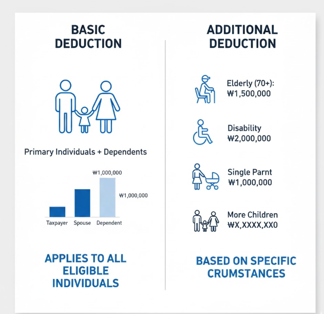 참고: 장애인의 경우 나이 요건을 따지지 않으며, 소득 요건만 충족하면 기본공제 150만 원에 장애인 추가공제 200만 원까지 더해져 총 350만 원의 공제가 가능합니다.