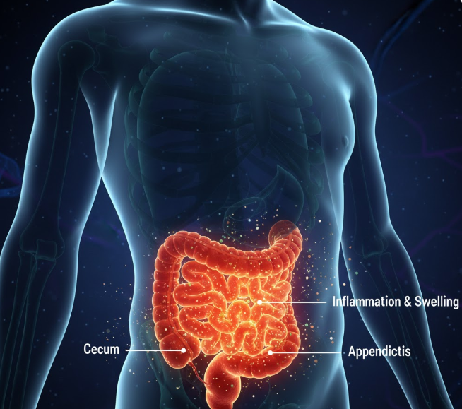 맹장염은 충수돌기에 염증이 생긴 상태로, 초기에는 배꼽 주변이 아프다가 시간이 지나면서 오른쪽 하부 복부로 통증이 이동하는 것이 특징입니다. 기침이나 걸을 때 통증이 악화되고, 오른쪽 다리를 굽히면 다소 완화됩니다. 발열, 식욕 부진, 구토가 동반되며, 치료 없이 방치하면 충수가 터져 복막염으로 진행할 수 있어 응급 수술이 필요합니다.