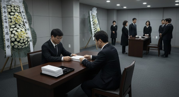장례식장에 도착하면 먼저 접수처에서 조문록에 이름을 기재합니다.