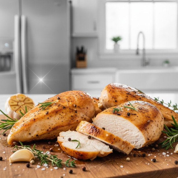 닭가슴살은 지방이 적고 단백질이 풍부하여 간세포 재생을 돕고 근육량을 유지합니다.